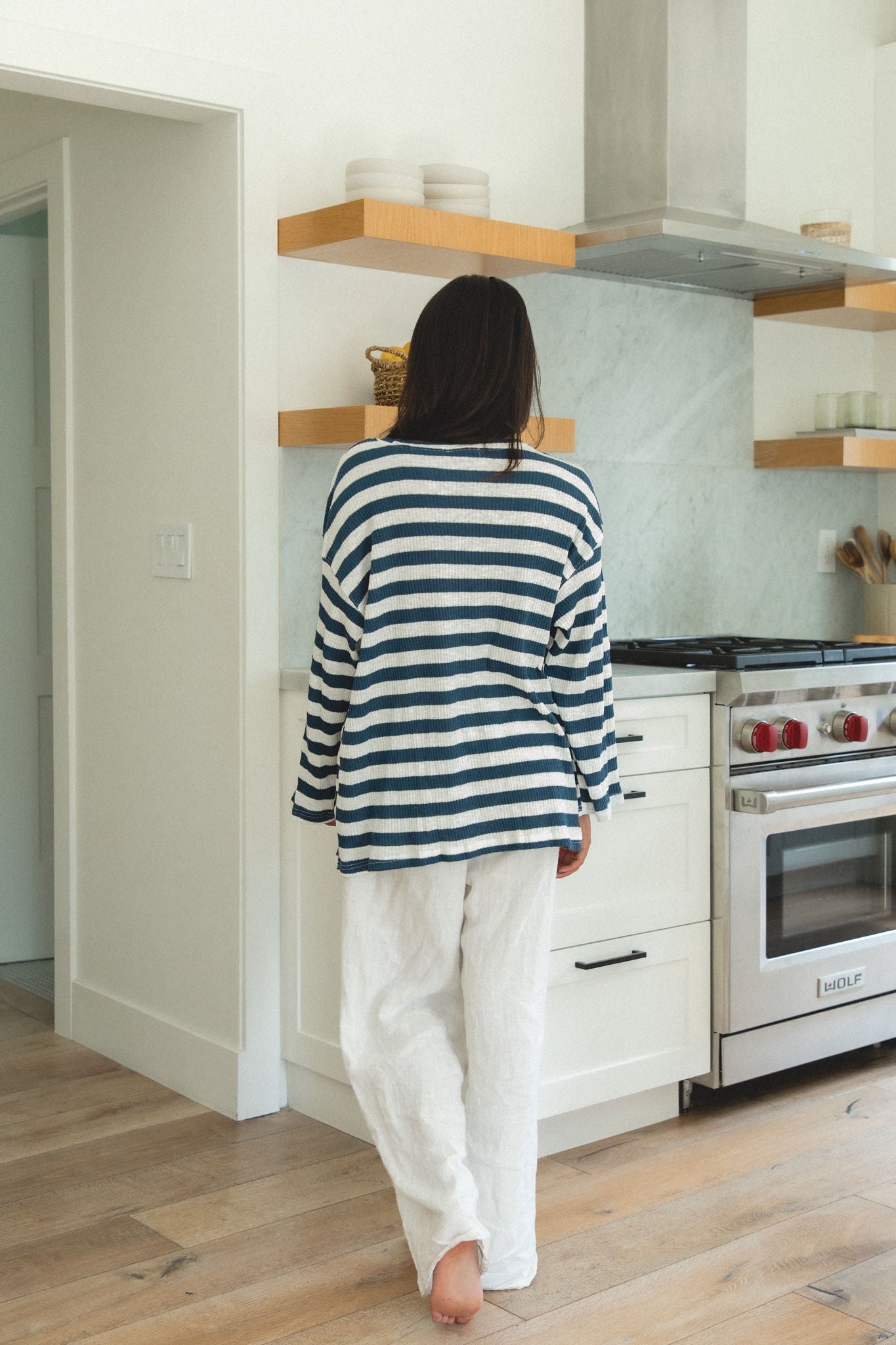 Ride the wave of style with our Tidal Wave Knit Cotton Ribbed Top! Featuring classic stripes (always in season) and a cozy ribbed texture, this top will keep you on trend and comfortable all fall long. Catch it before it's gone!